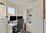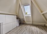 Onder het hoge, schuine dak zijn twee ruime slaapkamers. Beide kamers zijn te bereiken vanaf de overloop, met een dakraam en een mooie PVC-vloer. Zo hoef je niet te beginnen met verbouwen en kun je al snel beginnen met inrichten.