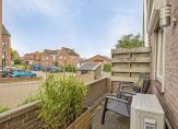 Vanuit de eetkamer is het meer dan 5 meter brede balkon te bereiken, met prachtig uitzicht naar de Oosterkerk. De ligging op het westen zorgt dat je van het begin van de middag tot laat in de avond in de zon kan zitten.