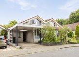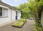 De voortuin met veel groen en drie lange, vierkante houten palen zorgt ervoor dat er weinig inkijk in huis is. Dankzij de oprit met carport is parkeren op eigen terrein altijd mogelijk.