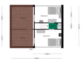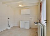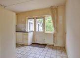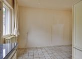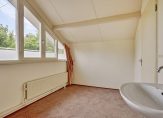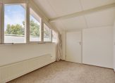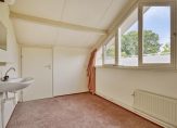 De slaapkamer is een mooie ruimte met inbouwkasten, een hoog plafond en laminaat op de vloer. Er is genoeg ruimte om een groot tweepersoonsbed neer te zetten. In het verlengde van de slaapkamer is de verwarmde bijkeuken met een plavuizen vloer, uitstortgootsteen en de wasmachineaansluiting. Met de was loop je zo naar de tuin, om deze in de wind te drogen.