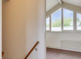 Op de eerste verdieping zijn twee slaapkamers met mooie, grote raampartijen en zicht tot in de nok. In de slaapkamer aan de achterzijde hangt een wastafel en vanuit beide slaapkamers is een handige berging te bereiken, in het schuine dakvlak aan de linkerzijde. Beide slaapkamers grenzen aan een overloop met handige bergkast.