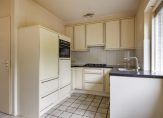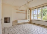 De L-vormige woonkamer is een goed in te delen leefruimte met het ruime zitgedeelte aan de voorzijde en het eetgedeelte aan de achterzijde, naast de keuken. Blikvanger is de strakke schouw met gashaard, die voor een aangename warmte zorgt.