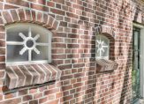 –	Houten kozijnen, gedeeltelijk voorzien van dubbel glas;