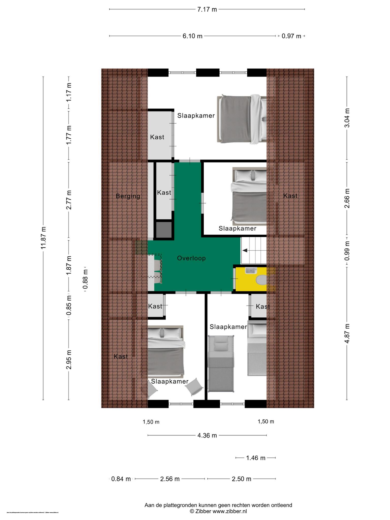 In totaal zijn er vier slaapkamers, waaronder de master bedroom met een diepe inbouwkast. Ook de drie andere slaapkamers hebben een inbouwkast en/of berging in de schuinte van het dak.
