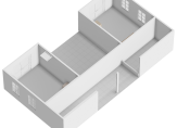 Volg de trap in de hal, die leidt naar een ruime overloop. Bij het dakraam is plek voor een bureau en verder zie je een brede garderobekast en een lage deur naar een van de bergingen in de schuinten van het dak. Naast de trap is, heel handig, een toiletruimte.