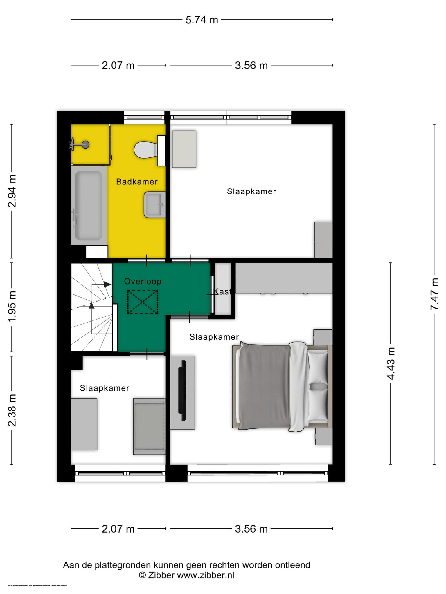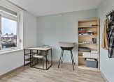 Eerste verdieping: Deze woning heeft drie slaapkamers, waarvan twee van groot formaat. Aan de voorzijde zijn de hoofdslaapkamer en een superleuke kinderkamer, met uitzicht naar de brede straat. In de hoofdslaapkamer zie je een diepe nis, om een grote garderobekast neer te zetten. De slaapkamer aan de achterzijde is qua grootte geschikt om in te richten als tweepersoonskamer.