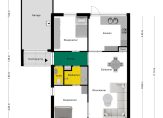 Een schuifdeur biedt toegang tot de eerste slaapkamer, die ook als deel van de leefruimte gebruikt kan worden. Zo is deze ruimte geschikt als eetkamer, aparte zitkamer of werk-/studeerkamer.