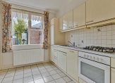In de dichte keuken staat een bijna 3 meter lange wandopstelling met een gaskookplaat, afzuigkap, oven en een koelkast. De gaskookplaat, koelkast en vaatwasser zijn na 2018 vernieuwd. Ook vanuit de keuken is de achtertuin te bereiken.