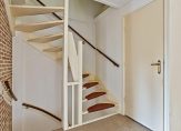 In de hal, aan de rechterzijde, zijn de toiletruimte met fonteintje en de trap naar de eerste verdieping. Onder de trap is een handige kelderkast en aan de andere zijde, naast de woonkamerdeur, is de meterkast.