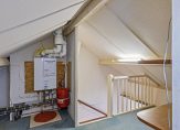 Een vaste trap geeft toegang tot de tweede verdieping, verdeeld in een overloop en een bergzolder. Op de overloop is de opstelling van de HR-ketel en de bergzolder is voorzien van twee dakramen.