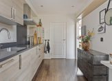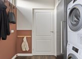In het verlengde van de keuken is de bijkeuken, met dezelfde vloerafwerking en een deur naar de berging. In de bijkeuken is ruimte om de wasmachine, droger en een grote vriezer neer te zetten.