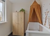 Vanaf de overloop zijn drie slaapkamers en de badkamer te bereiken. Aan de achterzijde zijn de sfeervolle master bedroom en een mooie kinderkamer, terwijl de slaapkamer aan de voorzijde als kleedruimte in gebruik is. Deze kamer is groot genoeg om in te richten als tweepersoonskamer of ruime kinderkamer.