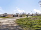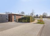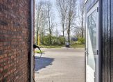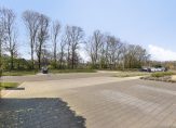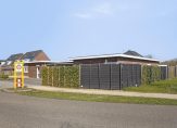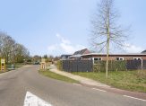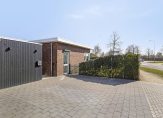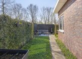 Vanaf de oprit, waar twee auto’s naast elkaar kunnen staan, loop je naar de voordeur van deze duurzame bungalow. Je passeert hierbij de laadpaal en een berging, voor de fietsen en andere spullen.