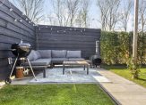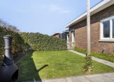 Vanuit de woonkamer is de tuin te bereiken, gesitueerd op het oosten en zuiden. Dankzij de lage bebouwing kun je in deze tuin de hele dag in de zon zitten. Er zijn twee terrassen gemaakt en verder zie je veel groen.