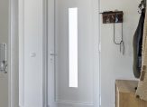 De L-vormige hal is een fraaie ontvangstruimte die direct de kwaliteit en sfeer van de bungalow bepalen. De tegelvloer met houtmotief en vloerverwarming ligt in de hele bungalow en de trendy woonkamerdeur met glas zorgt voor veel lichtinval.