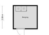 Links van de toiletruimte en badkamer is een inpandige berging met de opstelling van de warmtepomp, boiler en de aansluitingen voor de wasapparatuur.