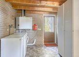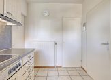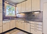 Aan de andere zijde van de woonkamer is de dichte keuken, met een lichte tegelvloer en een nette hoekopstelling. Alle apparatuur is ingebouwd en extra bergruimte is er in de trapkast. Naast de keuken is de verwarmde berging/bijkeuken, met de HR-ketel, ruimte voor een wasmachine en genoeg plek om de fiets binnen te zetten!