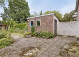 Bij aankomst heb je de fraai aangelegde voortuin met gevarieerde beplanting al gezien. Je kunt deze tuin, gesitueerd op het zuiden, ook vanuit de woonkamer bereiken. In de keuken is een deur naar de achtertuin, waar je dankzij de diepte in de schaduw en zon kan zitten. Er staan een stenen berging en een houten tuinberging, met ruimte voor het tuin-/klusgereedschap en de fietsen. In de hoek van de tuin is een poort naar de steeg.