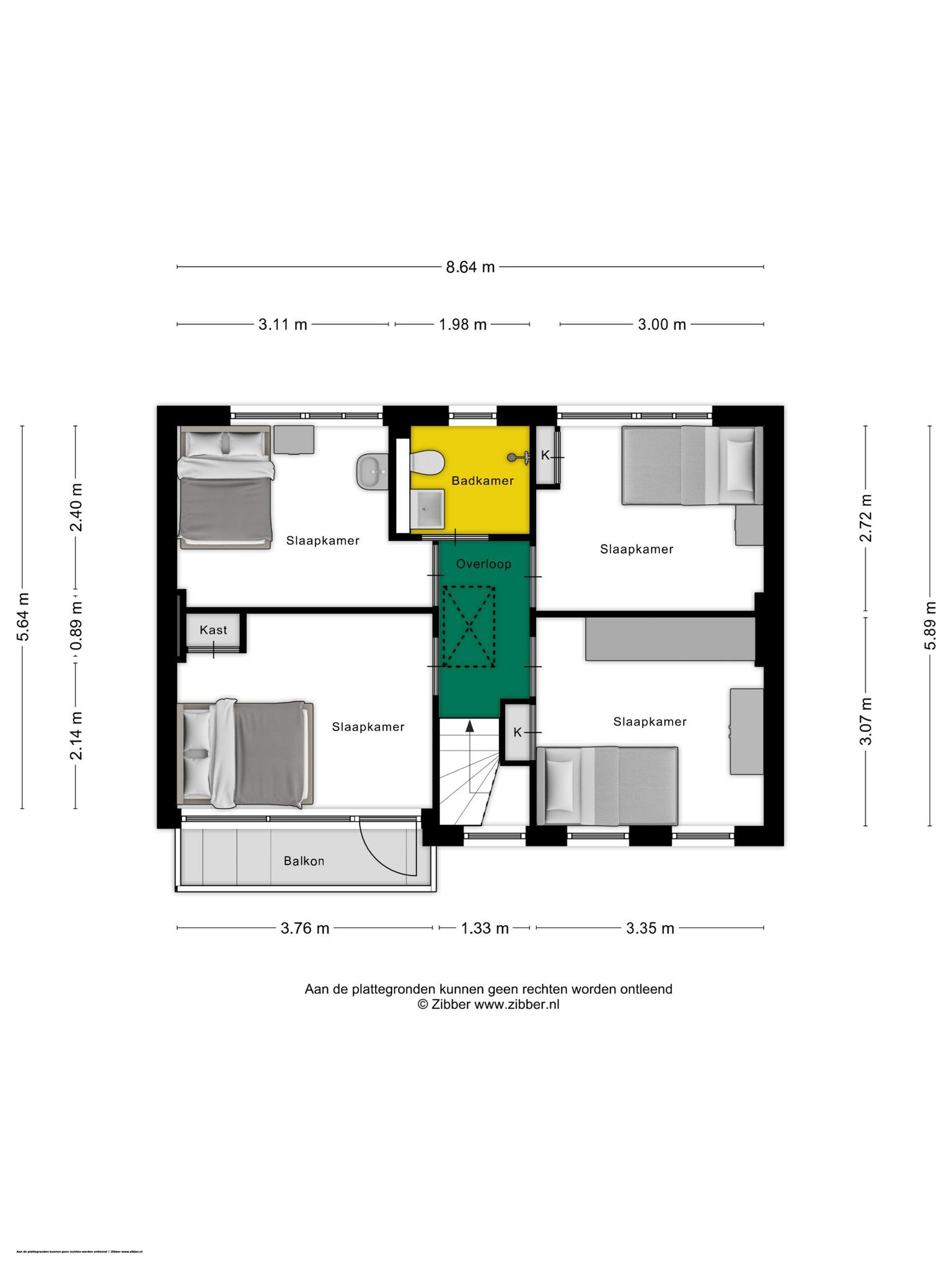 Niet alleen op de begane grond, maar ook op de eerste verdieping is dit een huis met verrassend veel ruimte. Aan de overloop grenzen vier slaapkamers; twee aan de voorzijde en twee aan de achterzijde. Drie slaapkamers zijn voorzien van een inbouwkast en in de vierde kamer hangt een wastafel met marmeren achterwand. Vanuit de hoofdslaapkamer met balkon heb je mooi uitzicht naar de Zuiderkerk, met de schildering van Mozes als kleurrijke blikvanger.
