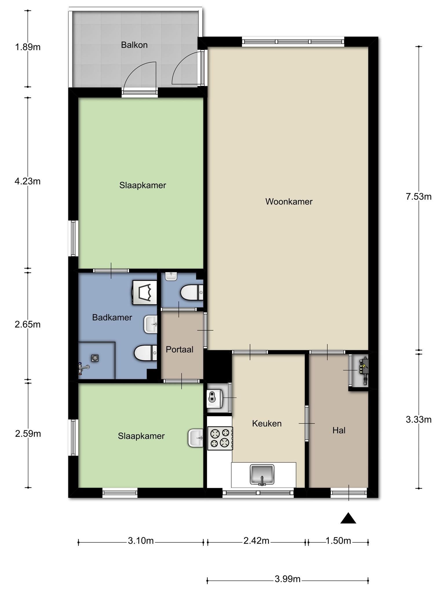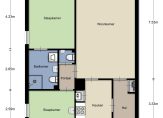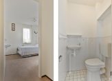 De tweede slaapkamer en de toiletruimte grenzen aan het portaal.