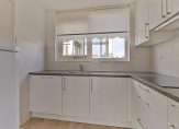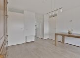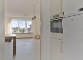 Achter de voordeur is een hal met genoeg ruimte voor een garderobe en een kast. Rechtdoor loop je de lichte woonkamer in, met prachtig uitzicht richting het centrum en de kerk. De woonkamer is goed in te delen met een grote zithoek, eettafel en een servieskast. Aan ruimte geen gebrek!