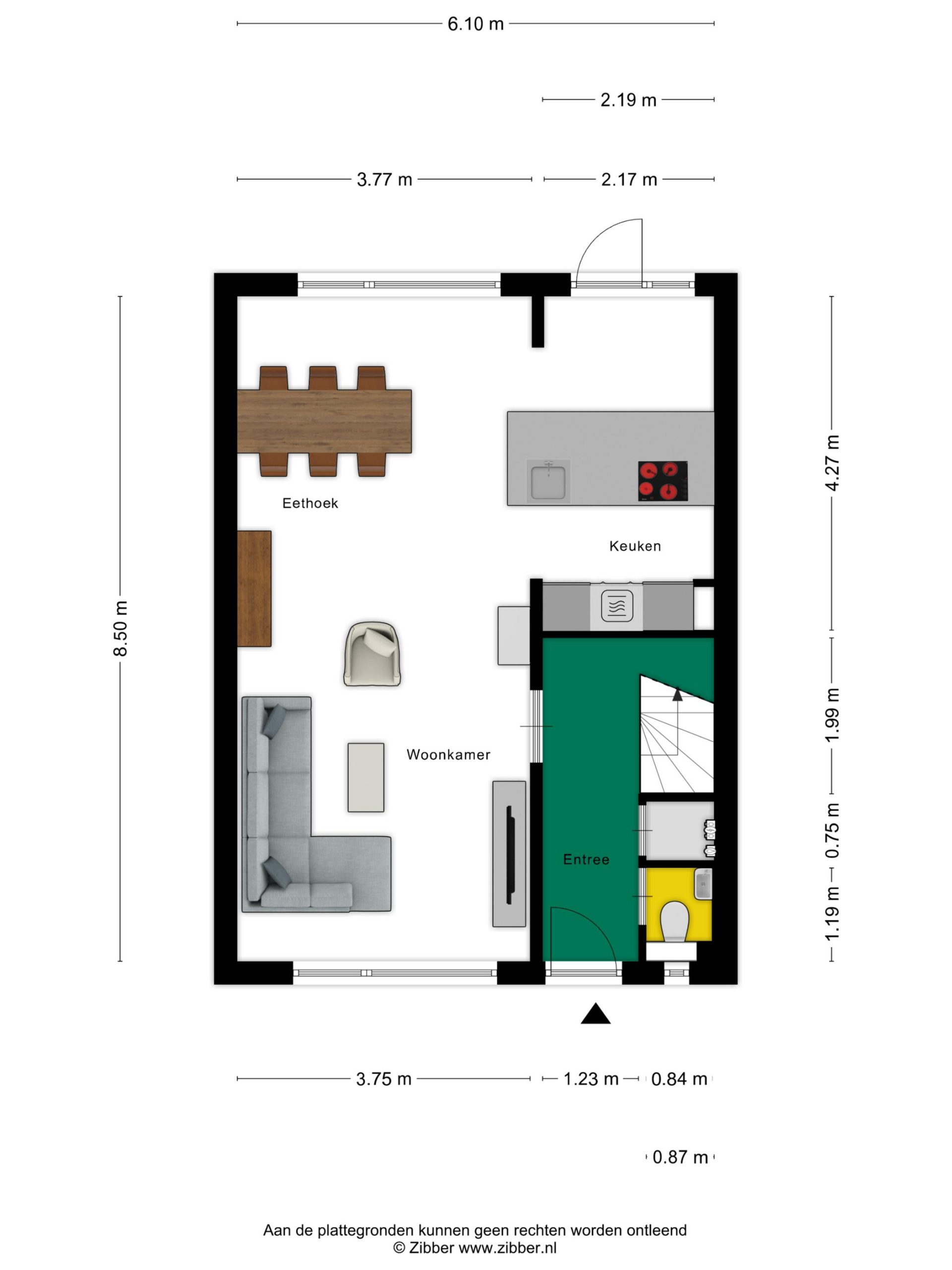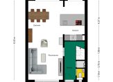 De woonkamer, met een indrukwekkende lengte van circa 8,5 meter, vormt samen met de open keuken een heerlijke, ruime leefomgeving. Aan de voorzijde bevindt zich het gezellige zitgedeelte, terwijl achterin ruimte is voor een royale eettafel voor zes personen – perfect voor lange diners of gezellige momenten met familie en vrienden. Dankzij de grote ramen, aan beide zijden voorzien van rolluiken, geniet je van een fraai uitzicht op zowel de voortuin als de achtertuin.