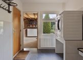 Naast de keuken is de bijkeuken met een uitstortgootsteen en een verhoging voor het witgoed. Vanuit hier zijn de toiletruimte, garage en een verwarmde berging/hobbyruimte te bereiken. De garage met vaste kast heeft een oppervlakte van circa 17 m² en de berging/hobbyruimte is ruim 19 m² groot.