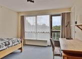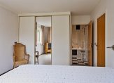 Een ander pluspunt van dit woonhuis is de slaapkamer met aangrenzende badkamer op de begane grond, waardoor je gelijkvloers kunt wonen. Vanuit de ruime slaapkamer met schuifwandkast kijk je naar de achtertuin en de badkamer is ingedeeld met een whirlpool-bad, inloopdouche, toilet, bidet en een wastafelmeubel.