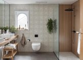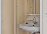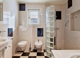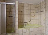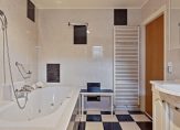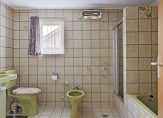 De tweede badkamer, uitgevoerd met groen sanitair, is ingedeeld met een ligbad, separate douche, toilet, bidet en een dubbel wastafelmeubel. Qua voorzieningen nagenoeg hetzelfde als de badkamer beneden, maar dan uit de jaren 60.