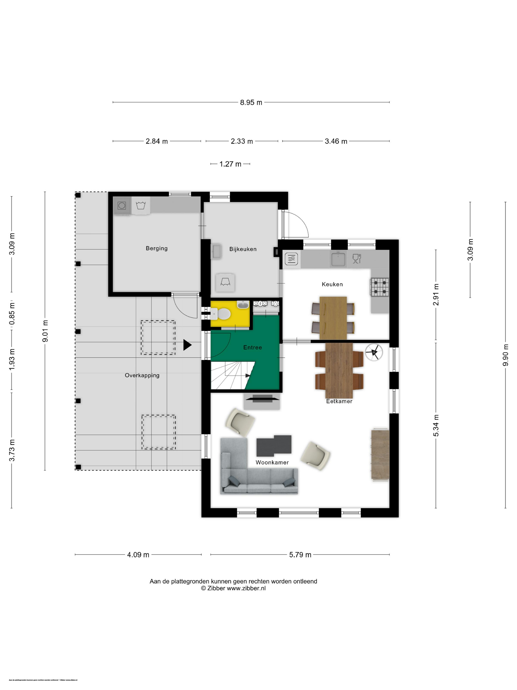 Onder de carport zie je de voordeur en een deur naar de aangebouwde berging. Achter de voordeur is de hal met de trapopgang, meterkast en de toiletruimte met fonteintje. De L-vormige woonkamer heeft een mooie verdeling tussen het zit- en het eetgedeelte, met lichtinval vanaf drie kanten en mooi uitzicht naar het rustige pleintje. In de eetkeuken staat een lichte hoekopstelling, waarvan de inbouwapparatuur in 2012 is vernieuwd. De gaskookplaat, afzuigkap, oven, vaatwasser, magnetron en koelkast zorgen ervoor dat je direct kunt beginnen met koken en bakken.