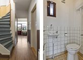 Begane grond: Aan de linkerzijde van de woning, naast de garage, is de entree van deze woning. In de hal zijn de meterkast, de toiletruimte met fonteintje en de trap naar de eerste verdieping. Onder de trap is een handige bergkast, voor de stofzuiger of te gebruiken als garderobe.