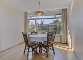 De meer dan 8.50 meter lange woonkamer heeft een prettige indeling, met het zitgedeelte aan de voorzijde en het eetgedeelte aan de achterzijde. Bij het zitgedeelte hangt een airco-unit (koelen/verwarmen) en de eikenhouten vloer past bij verschillende interieurstijlen. Je kijkt niet alleen naar de voor- en achtertuin, maar ook naar een groenstrook aan de overzijde van de rustige straat.
