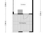 Vanuit de keuken loop je het terras op, waarna het maar een paar stappen is naar de bijna 7.50 meter lange garage met verwarming, water en elektra. Als er een auto binnen staat, dan is er genoeg plek voor de (kinder)fietsen en een werkbank voor je klusgereedschap. Naast de garage is een carport gebouwd, met ruimte voor twee auto’s.