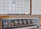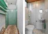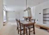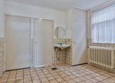 De naastgelegen bijkeuken, eveneens met verwarming, is klaar voor een nieuwe invulling. Hier zijn twee inbouwkasten en er hangt een wastafel, naast de deur van de garage.