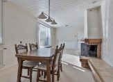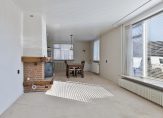 In de hal zie je de trapopgang en een marmeren vloer van breuksteen. Onder de trap is een handige bergkast, die als garderobe gebruikt kan worden. Rechts in de hal is een deur naar de ruime woonkamer, met lichtinval aan twee zijden en een grote open haard. Hier kun je gaan verbouwen, stylen en inrichten totdat de woonkamer perfect bij je past.