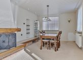 Aan de achterzijde is de dichte keuken, waar een eikenhouten hoekopstelling met een dubbele spoelbak staat. Vanuit de keuken is de inpandige, verwarmde garage te bereiken met dubbele deuren naar de Kerkstraat. Verder zijn hier de meterkast, wasmachineaansluiting en de toiletruimte.