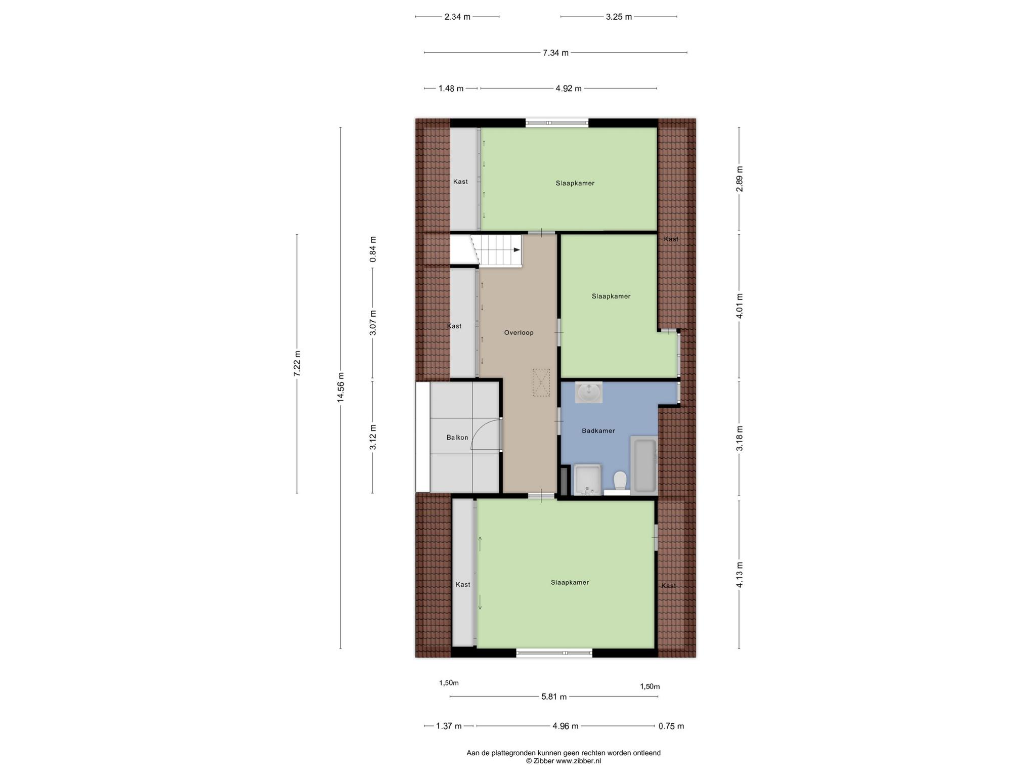 De overloop, met een deur naar de loggia, is een grote ruimte waar een 3 meter brede kastenwand is gemaakt. Verder zijn er drie slaapkamers op deze verdieping, waarvan twee met een kastenwand in de schuinte van het dak.