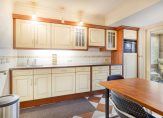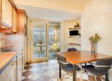 In de keuken staat een circa 3.80 meter lange wandopstelling met een keramische kookplaat, afzuigkap, combimagnetron, koelkast en een vaatwasser. De kleur van de keuken past goed bij de diagonaal gelegde tegelvloer. Via de schuifpui is de tuinkamer te bereiken, met een lichtkoepel en een grote schuifpui naar de tuin. Deze ruimte is onder andere geschikt om te gebruiken als eetkamer.