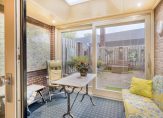 Vanuit de tuinkamer en de bijkeuken is de onderhoudsvriendelijke tuin te bereiken, die op het westen gesitueerd is. Aan twee kanten staat een mooie tuinmuur en aan de rechterzijde is de toegang tot de garage. Ook voor de voortuin, met kunstgras en twee bolvormige boompjes, heb je geen groene vingers nodig.
