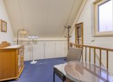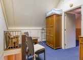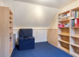De vijfde slaapkamer is een ruime kamer, met aan twee kanten een berging in de schuinte van het dak. Via het dakraam valt het daglicht naar binnen en boven het plafond is een vliering, te bereiken vanaf de overloop met bergzolder. Dit huis is een ruimtewonder, zowel beneden als boven!