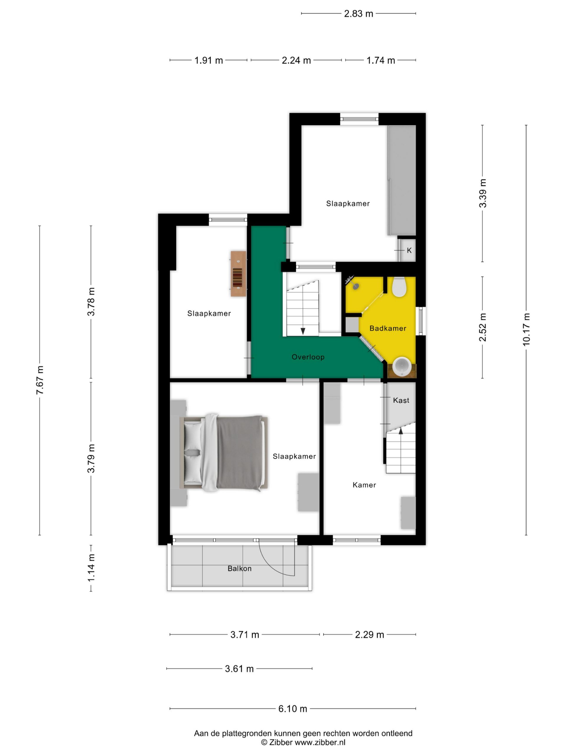 –	Vijfde slaapkamer op de tweede verdieping;