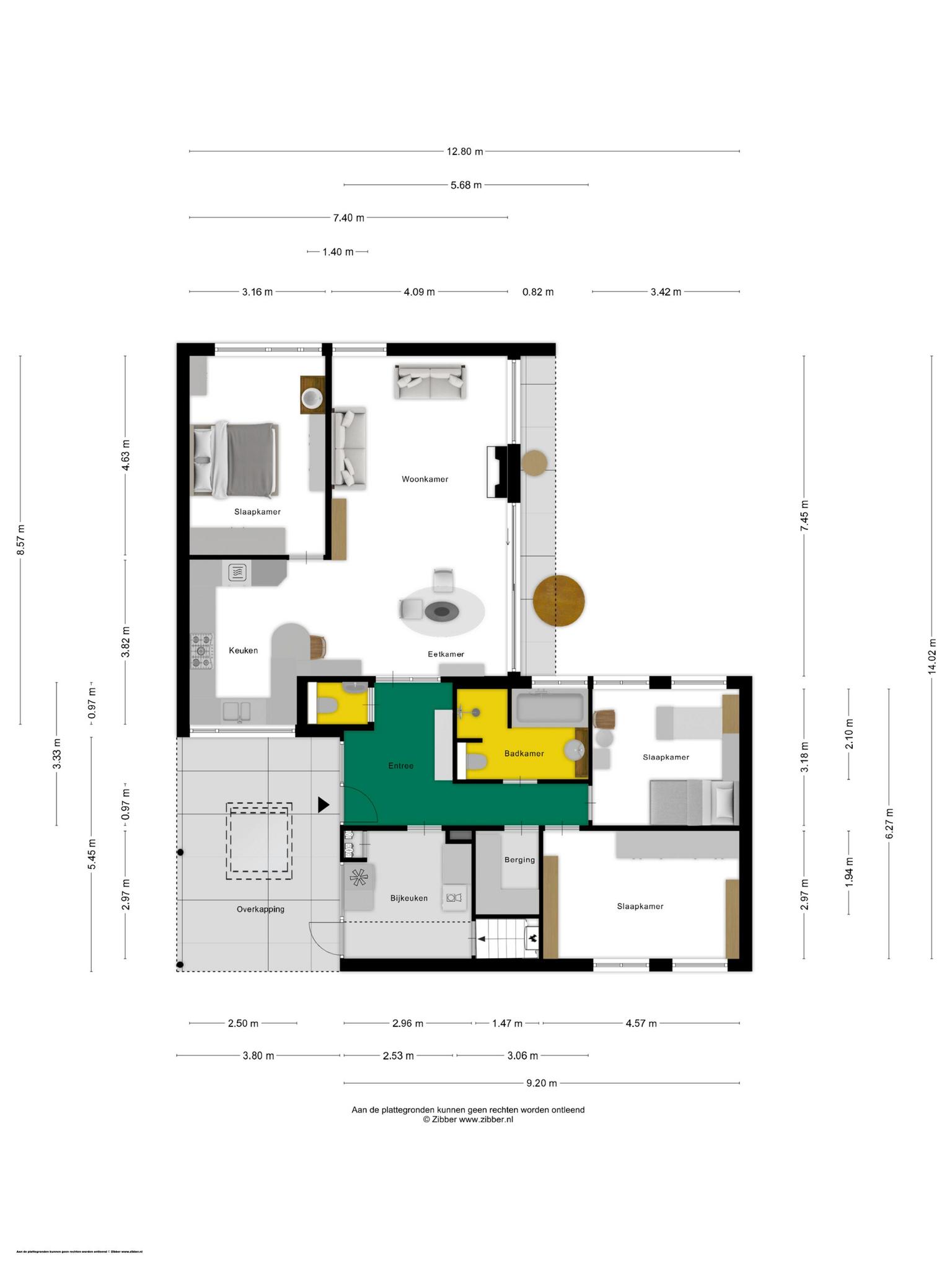–	Gelijkvloerse bungalow met drie slaapkamers;