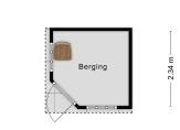 Bij de carport ziet u niet alleen de voordeur, maar ook het keukenraam en een deur naar de berging. Via de voordeur is de ruime hal te bereiken, met de garderobe en de toiletruimte aan de linkerzijde.
