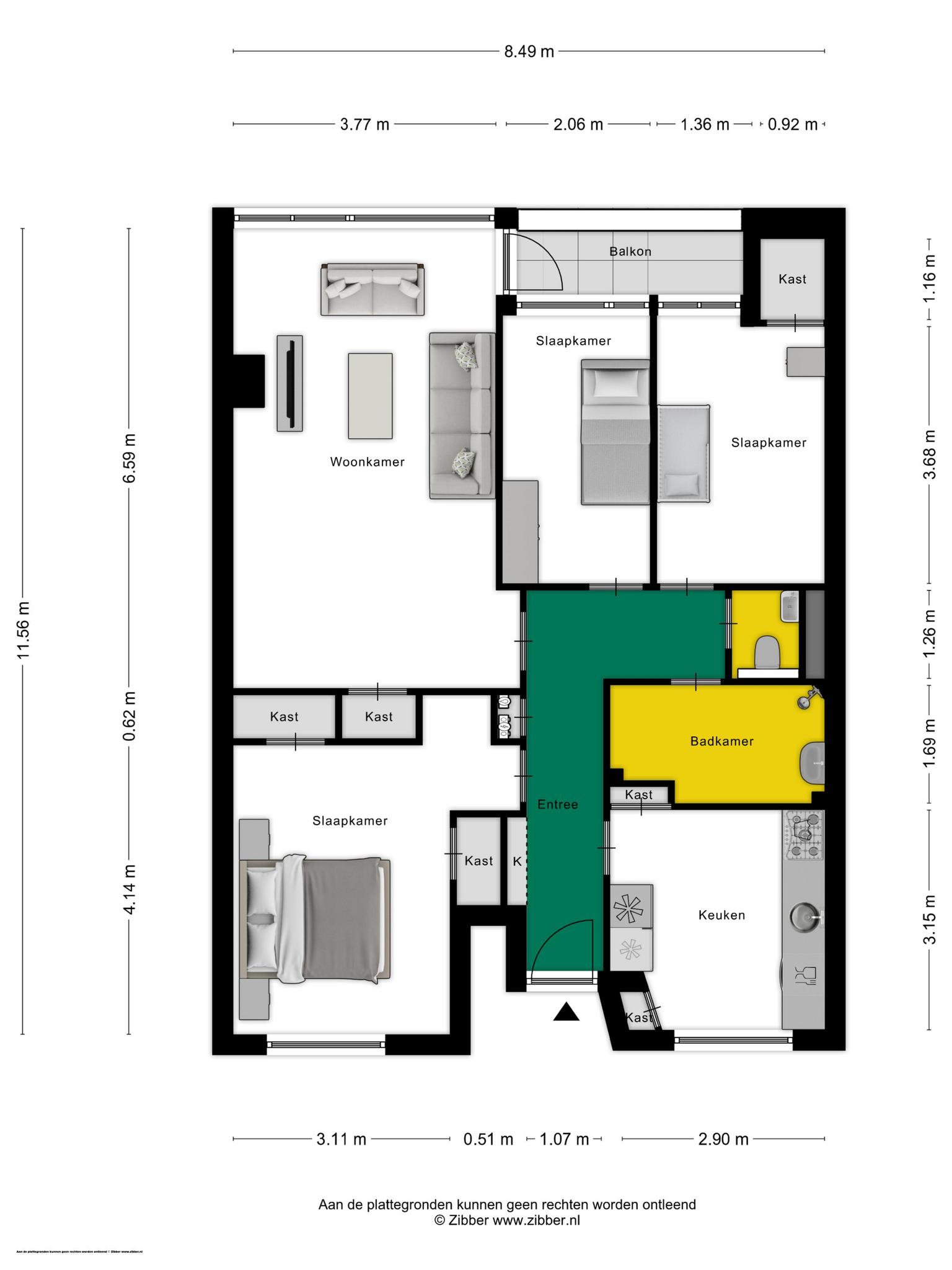 Dit appartement heeft maar liefst drie slaapkamers, waarvan twee aan het balkon grenzen. Een van deze kamers heeft een handige, diepe inbouwkast en de slaapkamer aan de galerijzijde heeft twee inbouwkasten, airconditioning en een wastafel. In deze slaapkamer ligt laminaat en in de andere kamers is de vloer afgewerkt met vinyl.