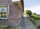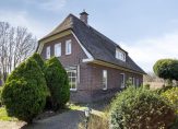 Wat een uitstraling heeft dit rietgedekte landhuis, aan de rand van het dorp. Aan de rechterzijde, bij het straatnaambord op de gevel, is de voordeur die toegang geeft tot de hal. Kom je met de auto thuis, dan kun je ook via de zijdeur bij de garage het landhuis betreden.
