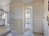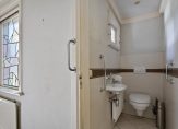 Een gang verbindt de garage met de hal, de vernieuwde toiletruimte met fonteintje en een badkamer met douche en wastafel. Verder heeft dit landhuis een wijn-/provisiekelder, te bereiken vanuit de eetkamer.