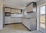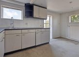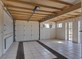 Via de eetkamer is de ruime eetkeuken te bereiken, met aan twee kanten een deur naar de tuin. Naast de keuken is een ruime, inpandige garage van circa 27 m2 met verwarming, een elektrisch bedienbare deur, een lichte tegelvloer en een keukenblok.
