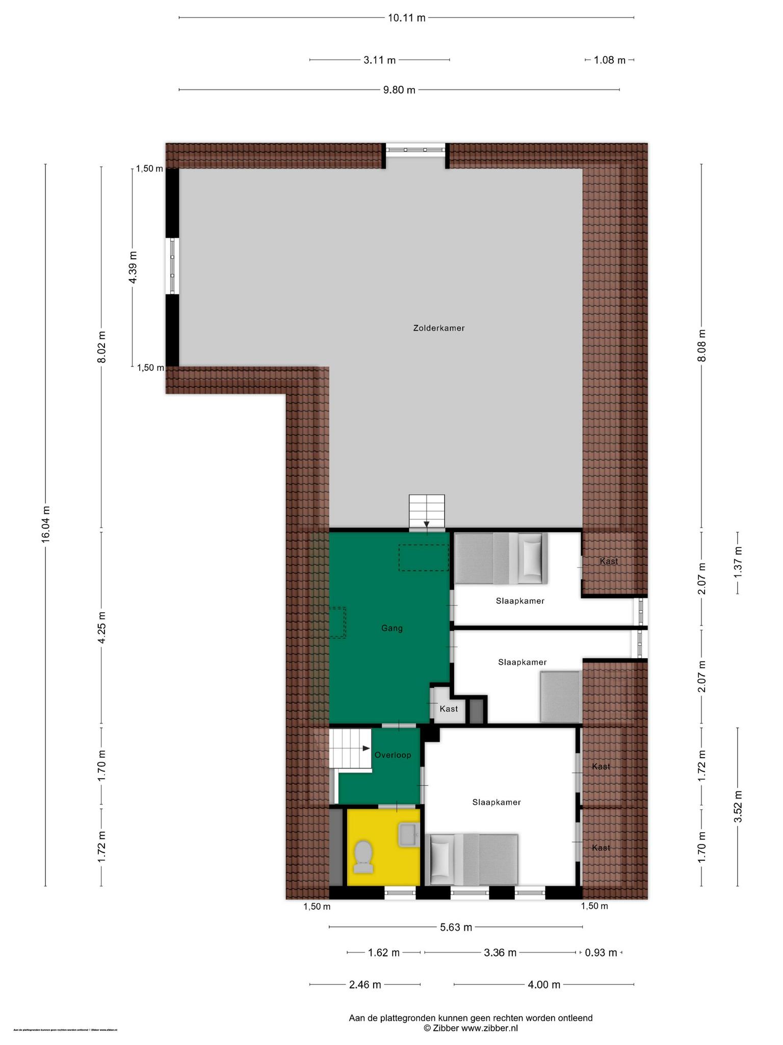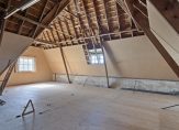 Het linkerdeel van deze verdieping biedt ruimte aan een grote zolder, met zicht tot in de hoge nok. Deze ruimte biedt de mogelijkheid om meerdere slaapkamers te realiseren.