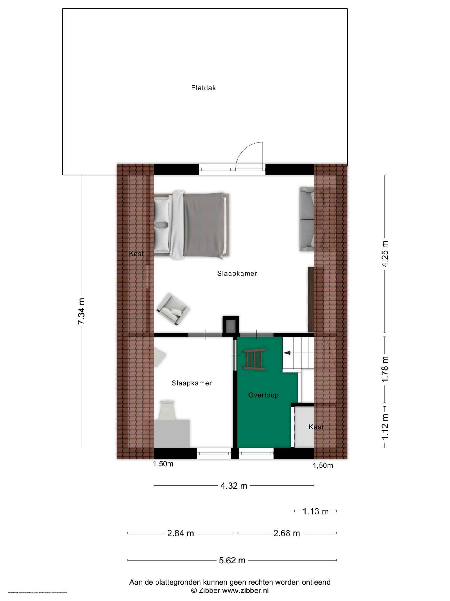 –	Twee (mogelijk drie) slaapkamers op de eerste verdieping;