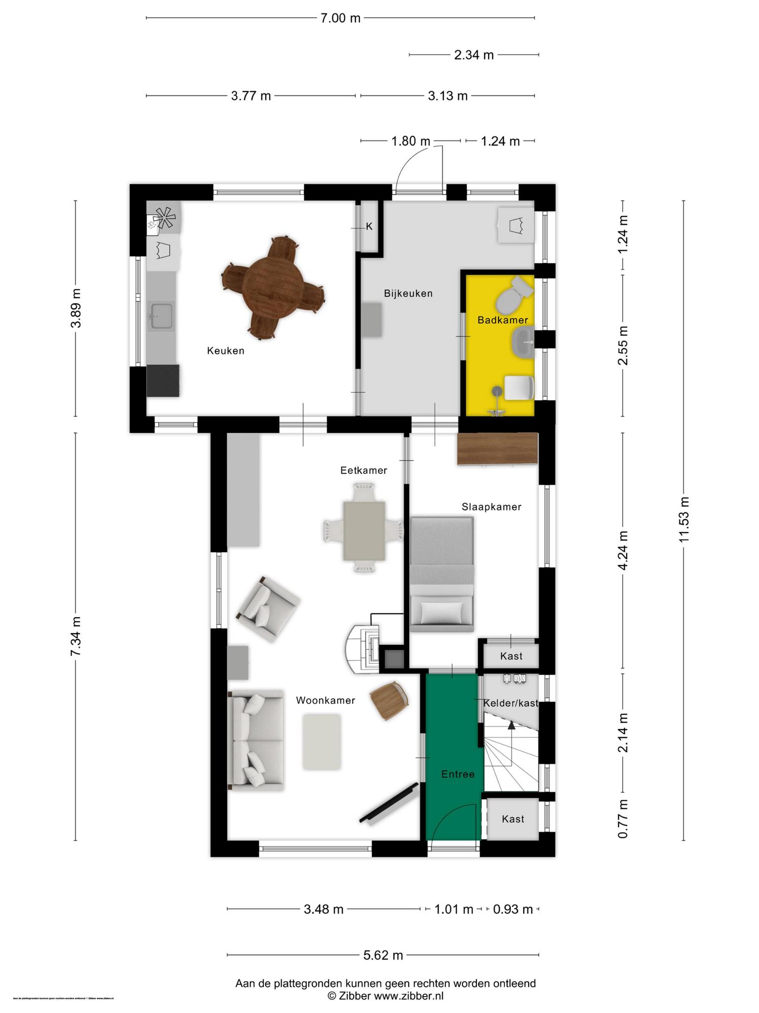 –	Grote aanbouw aan de achterzijde (keuken, bijkeuken en badkamer);